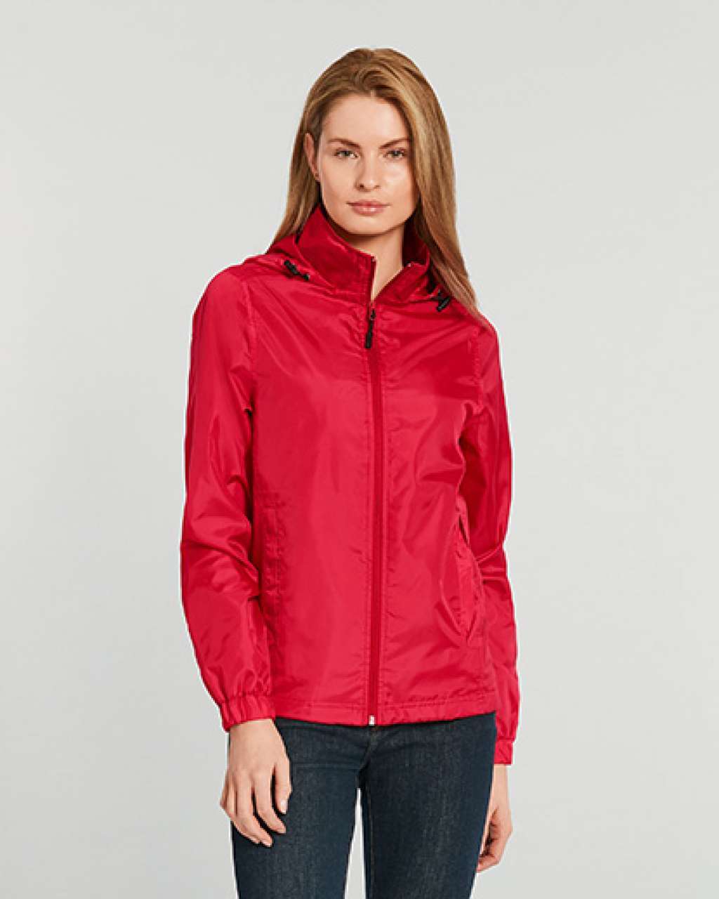 - Packable hood with adjustable toggles at collar with hook and loop closure