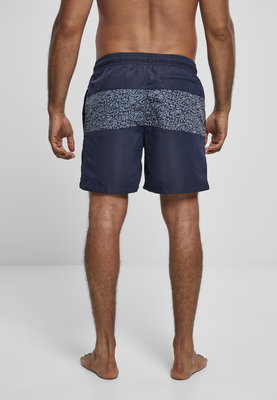 This men's swimwear is radiating a conventional yet fresh vibe: the plain-colored polyester material is characterized by wide horizontal stripes, interrupted by a pattern. An elastic waistband with drawstring closure promises safe wearing comfort. A practical addition to the men's swim shorts is the implemented zipper pocket on the back. The style is rounded off by a matching Urban Classics patch.