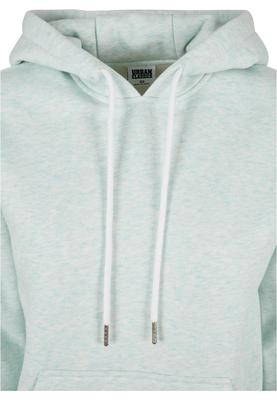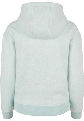 This cozy women's hoody provides all the features a proper sweater needs: first and foremost a large hood with metallic tipped drawstrings as well as kangaroo pocket, wide cuffs on sleeves and hem and an overcut shoulders section. The fit of the women's hoody is regular and it is made of smooth brushed fleece in a delicate mélange.