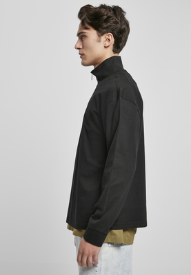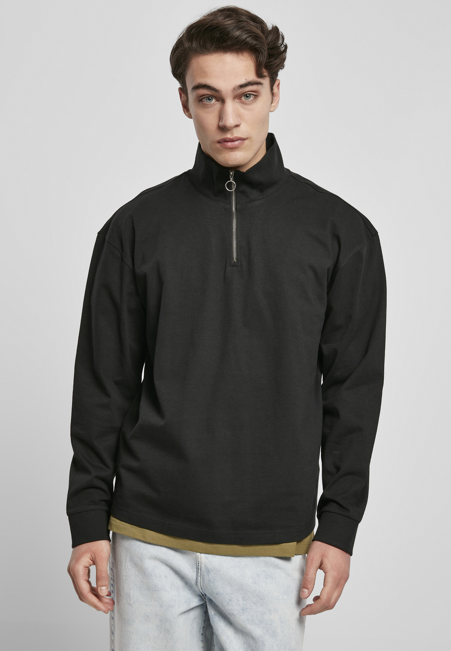 The plain-colored sweatshirt for men features a casual oversize fit with dropped shoulders. Its stand-up collar with zip lapel is a trendy accent. The urban style is rounded off by wide cuffs. The half-zip sweater is made of heavy cotton fabric.