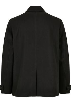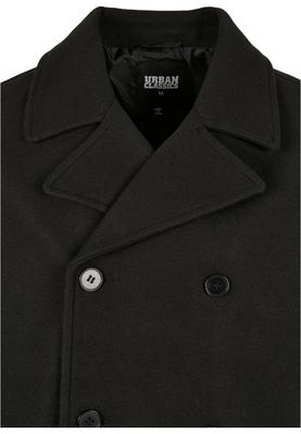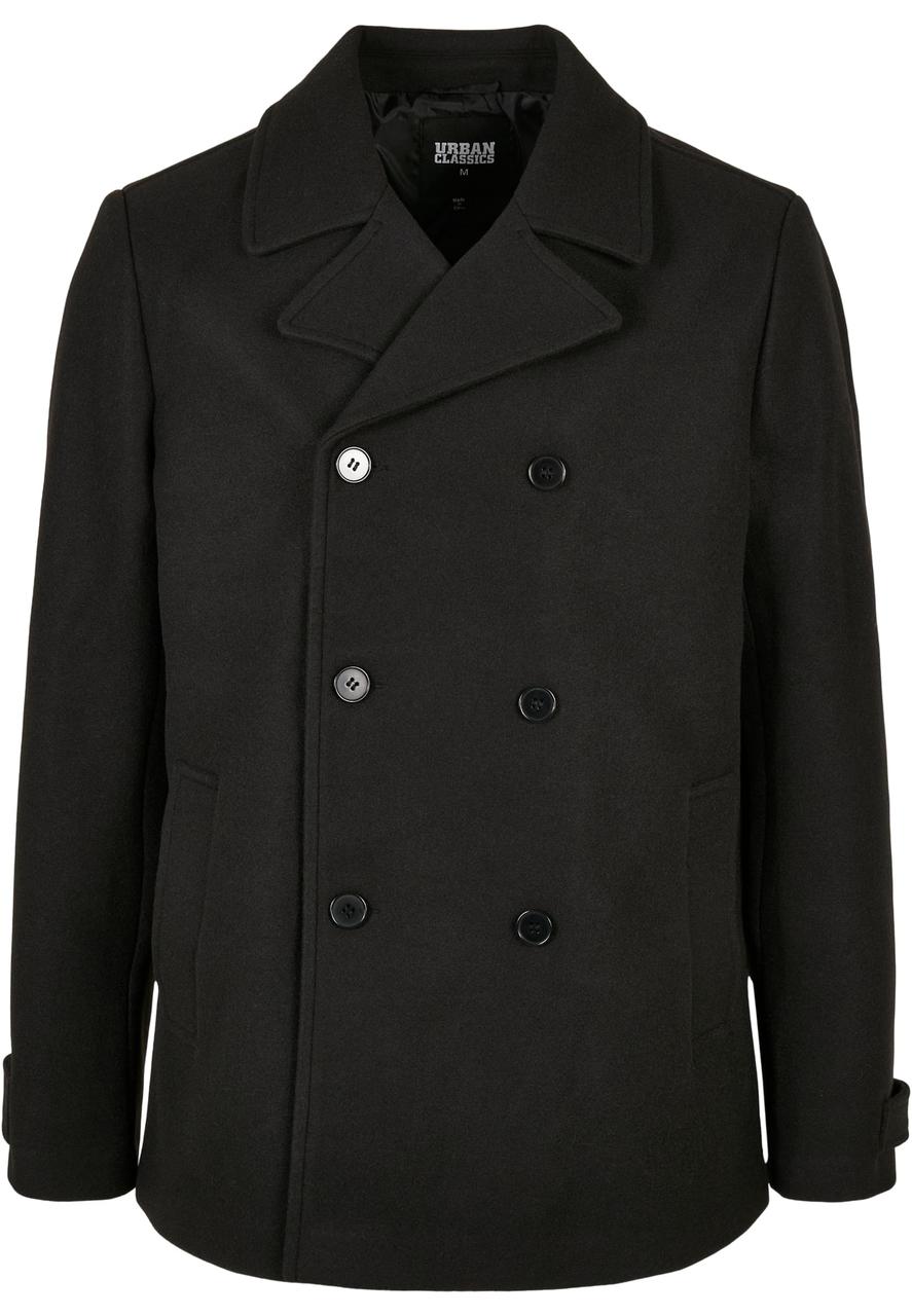 A both modern and classic short cut men's coat with a double-breasted button placket and a wide, turned-up collar. The edgy style is rounded off by cuffs with clasps and a small back slit. Additionally, the coat offers side pockets as well as a pocket on the inside and a regular fit. It is made of polyester and lined with high quality taffeta.
