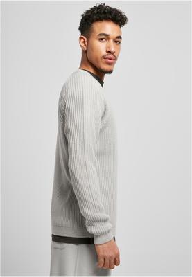 Rib structured and with a large crew neck and seamless sleeves in raglan style this men's sweater by Urban Classics is a new classic fashion piece. Smart details are the elastic cuffs and hemline. The fit of the sweater is regular and it is made of acrylic.