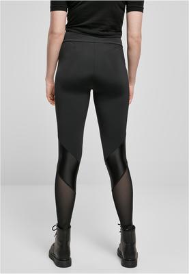 Hot urban fashion in the form of sophisticatedly designed leggings with a neat material mix. Transparent mesh and shimmering nylon lines have been cleverly set in diagonal inserts on the calves and knees. In addition, the women's leggings offer stretch jersey and a high, elastic waistband, thus are extremely comfortable to wear. Naturally, they also fit as tight as a second skin to emphasize the figure as best as possible.