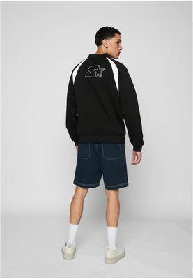 The masculine track jacket impresses with a minimalistic shape and a maximum in functionality. The employed material mix of cotton, polyester, micro-mesh and taffeta, together with a regular fit, provide perfect wearing comfort. Furthermore, it is equipped with wide cuffs on sleeves and hem, generous side pockets, a zipper as well as a college-styled collar. Colored narrow inserts on front and back of the shoulders set additional accents. The branding is visible as an embossing print on the back and as a Starter logo patch on the front.