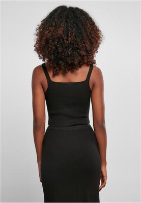 The straightforward ladies' top made of finest knitwear is without a doubt a succeeded fashion it-piece. Its angular and deep cutouts at the cleavage and the back are framed by fine straps. The cropped length fits right into the design. The women's knit top is made of polyacrylic, viscose and nylon and has a slim fit.