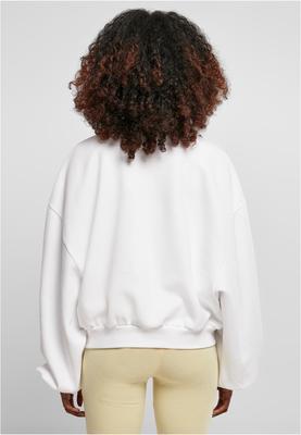 This women's sweater convinces with its pleasant style. The wide oversize fit is perfectly done and completed by generously cut shoulders and voluminous balloon sleeves. Enhancing the look is a rib crew neck with a decorative triangle underneath. Its wide cuffs and hem are also ribbed, and the sweater is made of comfortable and smooth terry fabric.