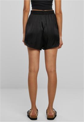 These hotpants combine a sporty cut with an elegant fabric consisting of shimmering satin. The result is an authentic it-piece. The high sitting elastic waistband is wide and complement the comfy legs with elevated side seam and slight slit. The hot pants are a loose fit.
