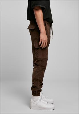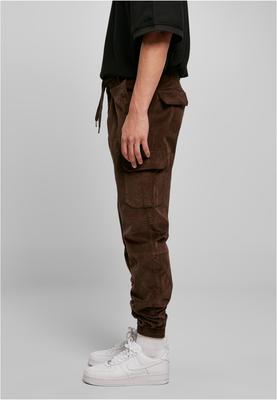 Corduroy meets cargo meets sweatpants  these men's trousers with attached cargo pockets, back pockets with flaps and side pockets are a fusion of all three. The material is comfortable stretch corduroy, while the cut is a slim fit. Elastic cuffs and integrated drawstrings at the waistband are comfy sweat wear elements.