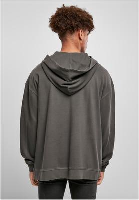 The men's hoodie satisfies with unusual details and an overdyed look. A stand-up collar with zipper and quilted lapel has been integrated into the large hood and the side pockets are being highlighted in the same way. The shoulders are dropped, and the sleeves are emphasized with dividing seams. Classic rib cuffs on sleeves and hem round off the look, while cozy terry fabric and an oversize fit provide perfect wearing comfort.