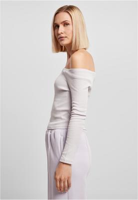 This unusual longsleeve for women combines two apparent opposites: an elegant carmen collar with free shoulders and a sporty stretch rib material made of cotton, which was refined with a small amount of elastane to ensure a smooth and comfortable slim fit. The fashionable top fits every combination, offers long sleeves, and is equipped with a satin hangerstrings, too.