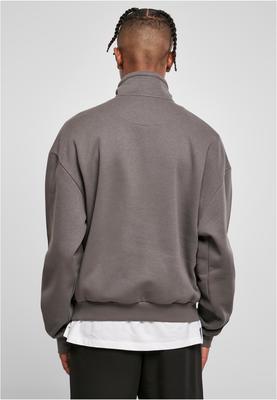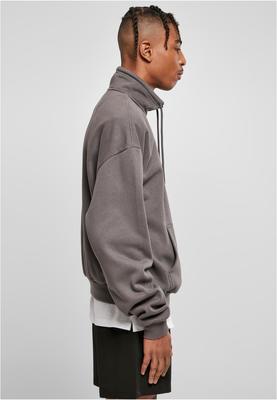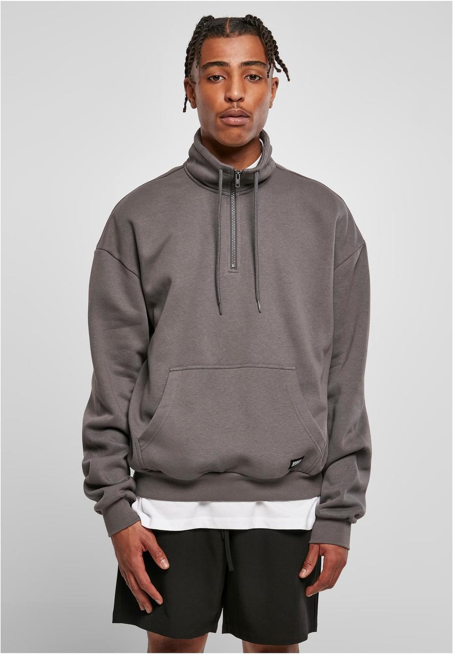 This cozy men's sweatshirt made of organic cotton terry satisfies with comfort and style. It features a high stand-up collar with drawstring and zip lapel. Other features include a kangaroo pocket with an Urban Classics patch and wide rib cuffs on sleeves and hem. The generously cut shoulders match the succeeded loose fit of the men's sweater perfectly.