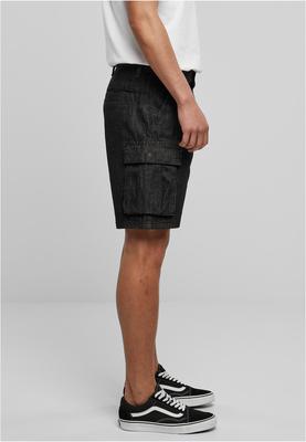 Classic men's denim shorts that merge successfully with cargo pants the two large cargo pockets with facings are being fastened with buttons. Side pockets as well as integrated back pockets complete the style in a relaxed and practical manner. The men's cargo shorts have a knee-length and regular fit. They are made with 50% organic cotton.