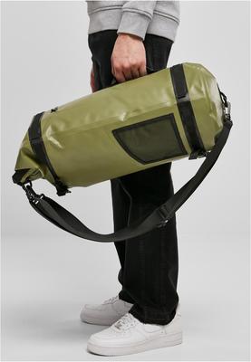 This hybrid of a backpack and a duffel bag is the perfect companion for all outdoor activities even on water. It is made of water-repellent PVC and can be shouldered via two size-adjustable canvas straps. An integrated handle on its back allows it to be carried as a regular bag. For fastening additional luggage an added hook system as well as various loops, rings and clips stand for disposal as smart and practical options. The backpack also features a practical, water-repellent zipper pocket and two transparent mesh pockets on its front. It is decorated with an Urban Classics logo print on the back and holds up to three liters capacity.