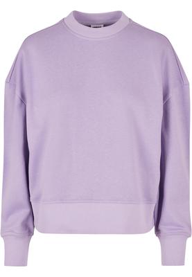 This heavy, single-colored women's sweater presents a formidable wide, angular boxy cut. The sleeves are wide and long and the shoulders heavily dropped. Matching the design is the heavy brushed fleece fabric as well as the fine rib crew neck and the wide rib cuffs on sleeves and hem that round off the style in a relaxed manner.