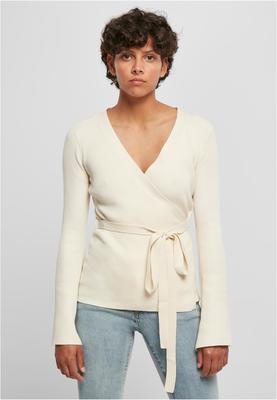A feminine, monochrome women's knit top which is worn classically wrapped and which keeps its form thanks to a small button on the inside. A belt completes the outfit as a harmonious detail. Furthermore, the wrap cardigan offers a V-neckline and wide, flared sleeves that enrich the look. The top is made of acrylic, viscose and nylon and is a comfy regular fit.