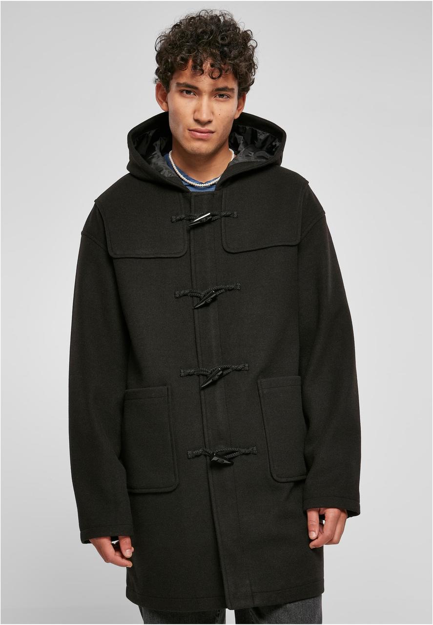 This men's duffel coat with elaborate details is as casual as it is masculine. The closure consists four duffle coat closer and a practical and hidden two-way zipper. Two large and quilted side pockets as well as the reinforced shoulder area visually stand out. Incidentally, the men's duffle coat also offers a cozy hood and is lined with soft taffeta, plus features an inner pocket for extra storing space. The coat is made of polyester and is an oversize fit.