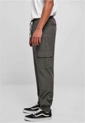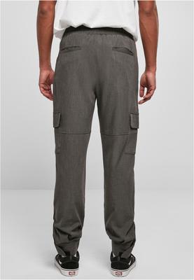 Men's cargo military trousers made of a light material mix of viscose, polyester and elastane and with an established cut. Stowing space comes in the form of two flat cargo pockets on the thighs, two side pockets as well as two back pockets. The proper fit of the pants guarantees an elastic waistband with drawstrings and a regular cut. Incidentally the leg cuffs are adjustable with hook and loop fastener for a more urban look.