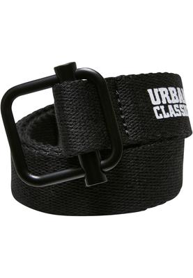 value set of two pack of canvas belts for kids with Urban Classics logo print and barcode motif