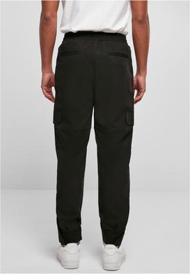 Men's cargo military trousers made of a light material mix of viscose, polyester and elastane and with an established cut. Stowing space comes in the form of two flat cargo pockets on the thighs, two side pockets as well as two back pockets. The proper fit of the pants guarantees an elastic waistband with drawstrings and a regular cut. Incidentally the leg cuffs are adjustable with hook and loop fastener for a more urban look.
