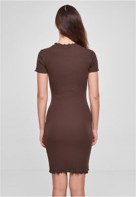 Dress designed for everyday wear, this slim-fit rib tee dress offers a body-skimming silhouette with a round neckline and short set-in sleeves for a clean, streamlined look. Constructed from a cotton rib jersey with a touch of stretch, it feels close-fitting yet comfortable and moves with the body. Delicate ruffled trim accents the neck, sleeve hems and skirt hem for subtle texture, while a right-to-left closure maintains a smooth front profile. The knee-length cut and minimal seaming create an uncomplicated layer that works from daytime errands to casual evenings, and the fabric’s natural handfeel keeps care straightforward for regular use.