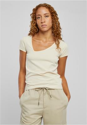 The women's T-shirt satisfies with a sophisticated, asymmetrical neckline and a smooth fabric made of organic cotton and a slight amount of flexible elastane. Short sleeves and a regular length complete the look. The cut of the women's t-shirt is slim fit.