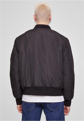 The men's bomber jacket present itself elegantly in a classic look. It is equipped with a front zipper, wide rib cuffs on sleeves and hem and a ribbed stand-up collar. A familiar zipper pocket on the left upper arm, two side pockets and one inner pocket round off the men's bomber jacket. Also, it features a quilted lining and is made of partially recycled polyester. Safe wearing comfort derives from the chosen regular fit.