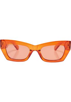 These cat-eye styled sunglasses are charismatic and extravagant companions. They are equipped with tonal lenses that fit perfectly into the overall design and match the wide plastic frame. The sides are cut wide accordingly. The sunglasses feature UV 400 protection and one protective cover with Urban Classics print.