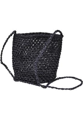A small, fine raffia bag without any fuss such as lining or closure. It is made entirely of the natural material raffia paper! A subtle strap allows it to be worn over the shoulder or across the body. The bag presents shows a cylindrical shape and a fine weave pattern that is almost opaque.