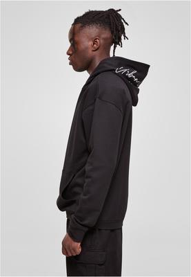The single-colored men's hoodie satisfies with an elaborate and style-conscious Urban Classics embroidery on the back of the hood. Other strong features include a kangaroo pocket and wide cuffs on sleeves and hem. A comfortable oversize fit with dropped shoulders rounds off the look in a relaxed fashion. The sweater is made of a heavy cotton fabric.