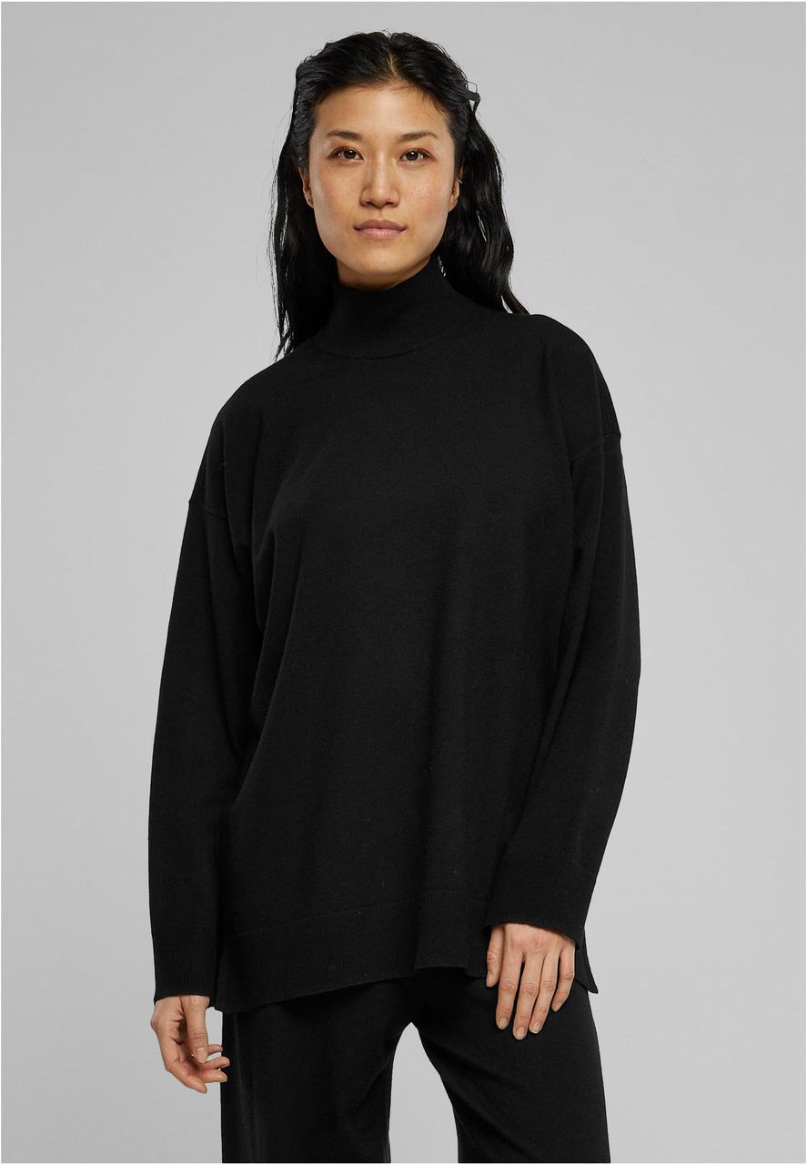 The women's turtleneck knit sweater presents itself with a flowing and smooth shape. It is cut as an oversize fit with dropped shoulders. Side slits and wide cuffs on sleeves and hem add sophistication. This sweater contains LENZING™ECOVERO™ viscose fibers.