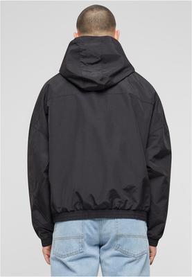 The practical men's jacket is equipped with hood and dropped shoulders and is an oversize fit. An integrated zipper pocket in the middle of the chest makes for an individual touch, while elastic cuffs on sleeves and hem provide additional wearing comfort. The men's jacket is made of robust nylon. Furthermore, the body is lined with mesh and the sleeves with taffeta.