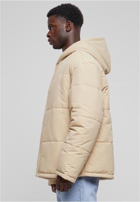 The men's puffer jacket shows itself solidly padded and with a comfortable hood. It fastens via a zipper. Intelligent details are two side pockets with press studs, an inside pocket and sleeves that are equipped with additional rib cuffs. The style is finalized by an urban fit with dropped shoulders. The material of the men's puffer jacket consists of tear-resistant nylon and taffeta lining.