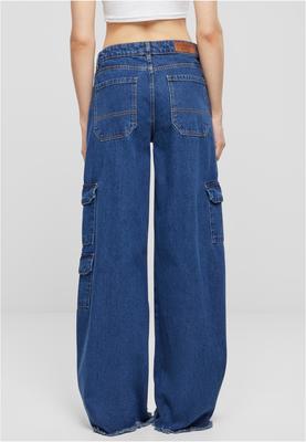 Showing wide, straight legs, the women's jeans with cargo pockets cut a particularly good figure. They sit mid high on the waist. The material is cotton and a loose fit provides casual appeal. Refined details are the generous side pockets as well as the open hems. The used cargo pockets are distributed asymmetrically two sit below each other at knee level on the left leg, one on the right side. Two large, patched back pockets complete the style.