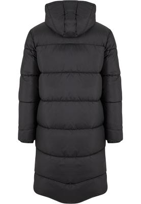This long puffer coat offers extended protection and a bold silhouette for the cold season. With its extra-long fit and voluminous padding, it guarantees maximum thermal insulation down past the knees. The continuous quilting, integrated hood, and elasticated finishes combine functional outdoor features with a modern, clean look. An essential key piece for a stylish winter appearance.