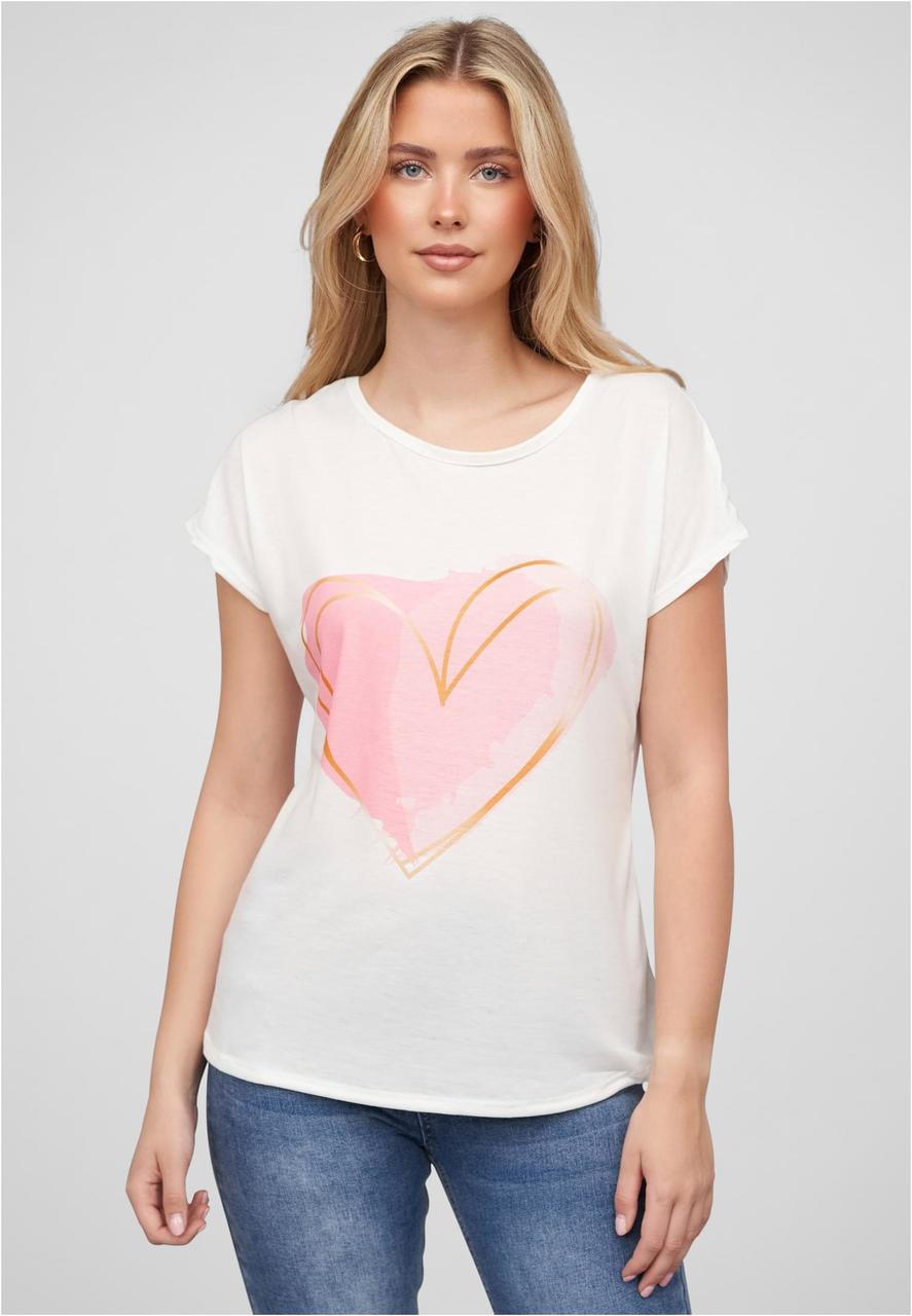 Cloud5ive Damen T-Shirt mit Herz Print und Rundhals white XL