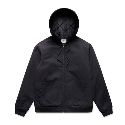 Showcasing the AS Colour Canvas Heavy Hooded Jacket, crafted with heavy weight cotton duck canvas and a quilted recycled polyester lining. Features include a lined hood, adjustable cuffs and hem, YKK zip closure, and convenient patch pockets. Designed with an invisible zip for effortless branding.