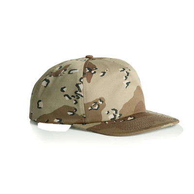 Unstructured snapbackSingle panel at front, plastic snapback, tonal under-peak lining, Camo pattern may vary from piece to pieceOne size fits allTear-out AS Colour label