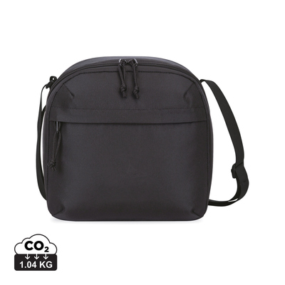 A modern and sustainable update to a classic lunch cooler using recycled fabric and webbing made from plastic bottles. Front zippered pocket for storing accessories. Dual zippered, angled opening to insulated main compartment. Adjustable, ambidextrous shoulder strap for customised wearing. Holds 9 cans. Includes AWARE™ Virtual ID & Product passport, which delivers an indisputable way to track and validate textile composition impact from origin to consumer. To access, scan the QR code located inside the product or visit wearaware.co to learn more. Available across both sides of the Atlantic. This item is also offered by Gemline for customers in the US and Canada.