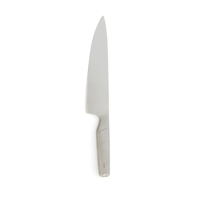 High-quality chef's knife in Japanese steel (420 J2). An incredibly sharp knife that keeps its edge for a long time. The knife has a wide blade that is slightly curved along the edge. A versatile knife that can be used for everything from peeling, chopping, and slicing vegetables, to trimming meat.