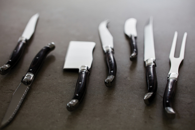 High-quality meat knives in typical French-inspired bistro style. Black pakka wood handle and high-quality stainless steel blades. The blade has a fine grating that allows you to cut through food with as little resistance as possible. A set of four knives which you can easily match with your forks at home. Packed in an exclusive gift box.