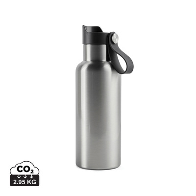 Practical and stylish water bottle with a tough, double wall. Vacuum sealed to keep drinks hot for up to 6 hours and cold for up to 12 hours. Enjoy your favourite cold drink while you're out and about or bring a warming cup of tea or coffee on your morning commute. Push-mug function. 500ml.