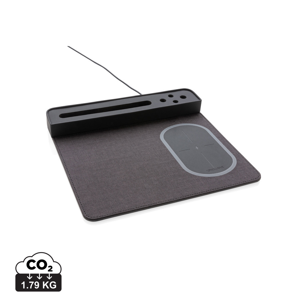 Quickly power up your smartphone by cable or any mobile device that supports wireless charging by simply setting it down on the right side of the mousepad. Sleek, slim rectangular mousepad design with anti-slip back comes with phone stand and 4 pen stands. Including 1.5m cable. Input: 5V/1A; Output 5V/1A; Wireless output: 5V/1A 5W.
