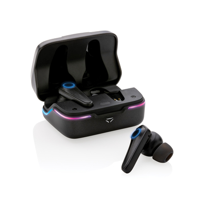 Become a gaming hero with this high quality gaming earbuds made for serious gamers. With 60ms low latency gaming mode to play video games without delay between your screen and the sound you are hearing. Incorporating full touch control to operate the earbuds during your gaming sessions. With integrated ENC for crystal clear calling and communication during gaming. The integrated RGB lights that can be set in different modes. With BT 5.1 for smooth operation and distance up to 10 metres . IPX 4 level waterproof. Playing time up to 6 hours and re-charging of earbuds in 1 hour and charging case is re-charged in 2 hours. With integrated MIC. Including 3 sizes earbuds. Item and cable are PVC free.