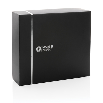 Wireless stereo headphone with high quality audio for a perfect sound experience. The 300 mAh battery allows you to listen to your music for up to 11 hours on one charge and recharging takes only 1.5 hours. Operating distance up to 10 metres. The headphone can be folded flat so it will fit in the Swiss Peak EVA travel pouch which is included. With aluminum casing and PU air cushions, the headphone is comfortable enough to wear for hours. With mic to receive calls. Including AUX cable.