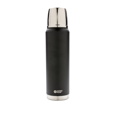 The Swiss Peak Elite series are with vacuum insulation and double wall 18/8 grade stainless steel. The powder coated black colour is built to last! No fading or cracking here! The inner wall is plated with copper for ultimate conductivity to keep drinks hot for 8 hours and cold for 24 hours. Hand washable and leakproof. Content 1000 ml.
