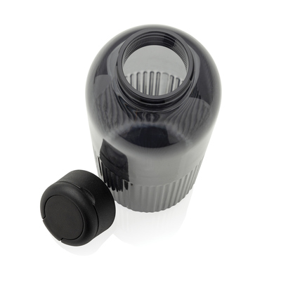Make a statement with the Ripple. A uniquely designed water bottle featuring a rippled effect at the base for a distinctive look and better grip. The secure screw-on lid includes a built-in handle, making it easy to carry wherever you go. Made from 73% RCS-certified recycled PET, this 750ML leakproof bottle is a stylish and sustainable choice for everyday hydration