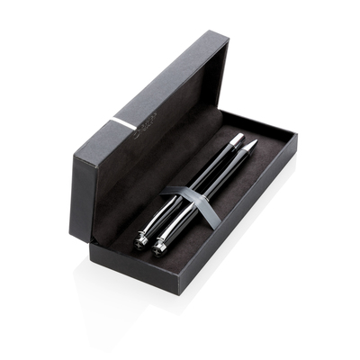 The Swiss Peak Heritage collection speaks the language of modern elegance. Luxury brass metal ballpen and rollerball set packed in Swiss Peak giftbox. Both metal refills with minimum of 1200m writing length and German ink.