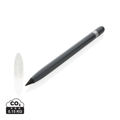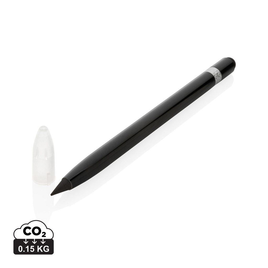 This inkless pen with eraser replaces your traditional wooden pencil. It has a writing length of up to 20.000 metres using a graphite tip to produce a graphite line. It features a clean and modern look with the aluminum and on the top you will find an eraser.