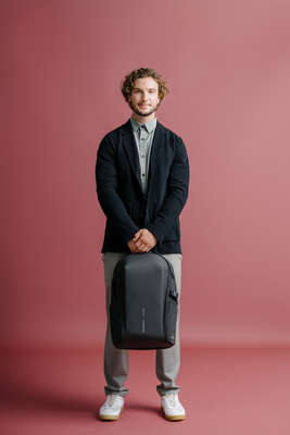 The Bizz Backpack is perfect for daily carry and light travel. The backpack features a 180-degree opening main compartment with an expandable section, internal mesh pockets, an integrated tech pouch and a detachable key leash. The rear pocket is protected with a waterproof zipper and features a padded sleeve for up to a 16” laptop. External easy access pockets are abundant including a high capacity water bottle pocket with a magnetic closure. The backpack is water-resistant and produced with recycled materials. Made from R-pet fabric with the AWARE™ tracer. With AWARE™, the use of genuine recycled fabric is guaranteed. 27% recycled content. Registered design®