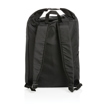 No greenwashing, but telling a true story about sustainability! This Impact 300D RPET rolltop backpack is made with AWARE™ tracer. With AWARE™, the use of genuine recycled fabric materials and water reduction impact claims are guaranteed, by using the AWARE disruptive physical tracer and blockchain technology. Save water and use genuine recycled fabrics. With the focus on water 2% of proceeds of each Impact product sold will be donated to Water.org. Keep it simple and stylish with this rolltop backpack. A perfect size for all your essentials. This backpack has reused 11,6 500ml PETbottles. Water savings are based on figures when compared to conventional fibre. This calculated indication is based on reliable LCA data as published by Textile Exchange in their Material Snapshots 2016.
